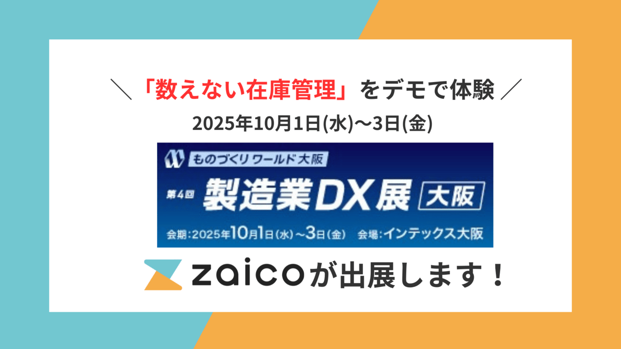 2025年10月1日から3日間にわたり開催される大型展示会「ものづくりワールド[大阪]」内の「第4回製造業DX展[大阪]」にzaicoが出展することをお知らせいたします。