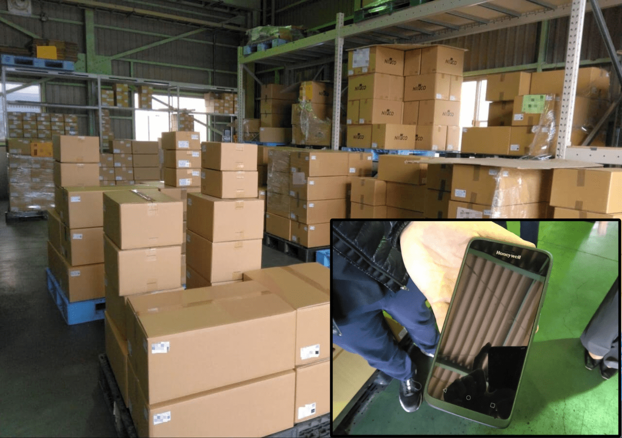出荷時は、現場でハンディターミナルを使ってラベルのQRコードをスキャンするだけで、ピッキングと出荷報告が迅速かつ正確に完了するとともに、zaico上の在庫データが自動で更新される仕組みを実現しています。
